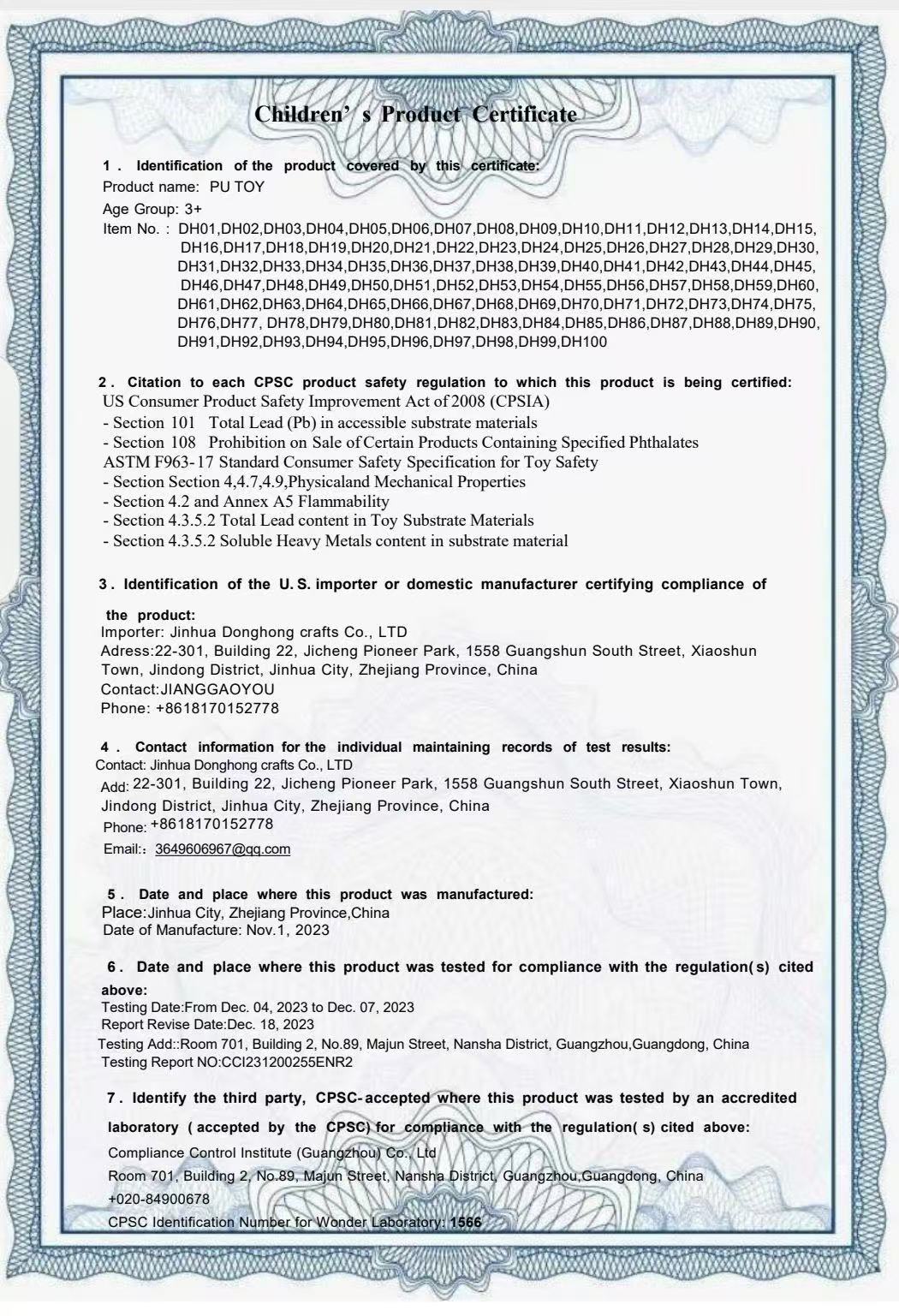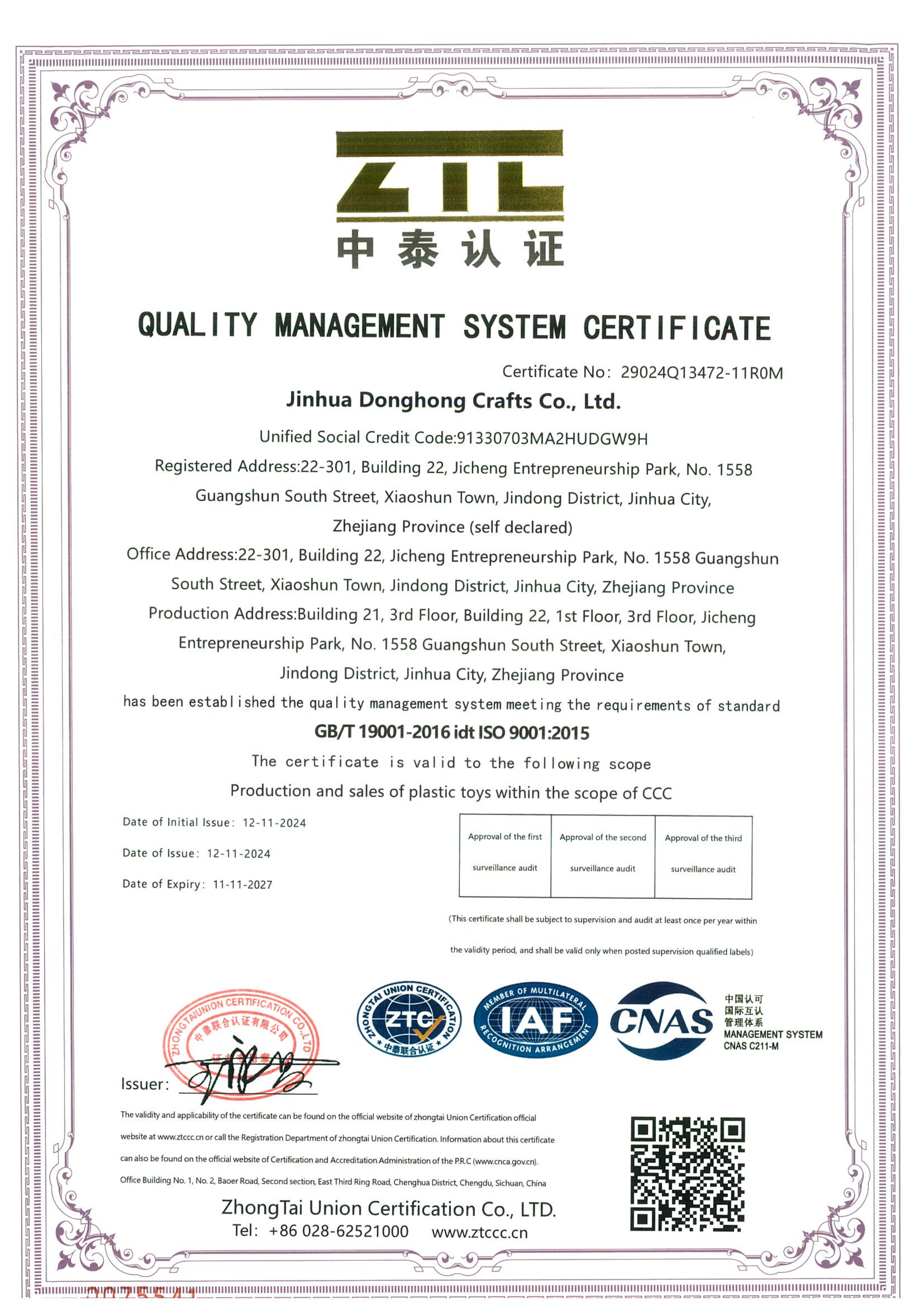 CCC Certificate CE Certificate Quality Management System Certificate etc.